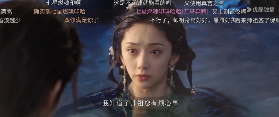 这个场景有很多女主的心理活动,真的演技很好,停雁当时是害怕惊恐的样子,真言之誓,又是一副怼天怼地不怕死的样子,师祖走后又惊魂未定,疑惑不解的样子,觉得师祖应该要找医生看看。